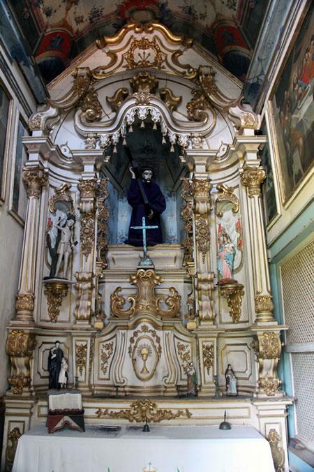 Dedicada ao Senhor dos Passos, a igreja preserva trabalhos ornamentais e pinturas em estilo rococó, expressão artística do final do século 18. Teto e paredes são revestidos por painéis pintados, com autoria atribuída a João Nepomuceno, conforme estudos recentes. As pinturas representam, entre outras, as cenas da Anunciação, a Adoração dos Pastores e o Sacrifico de Isaac.