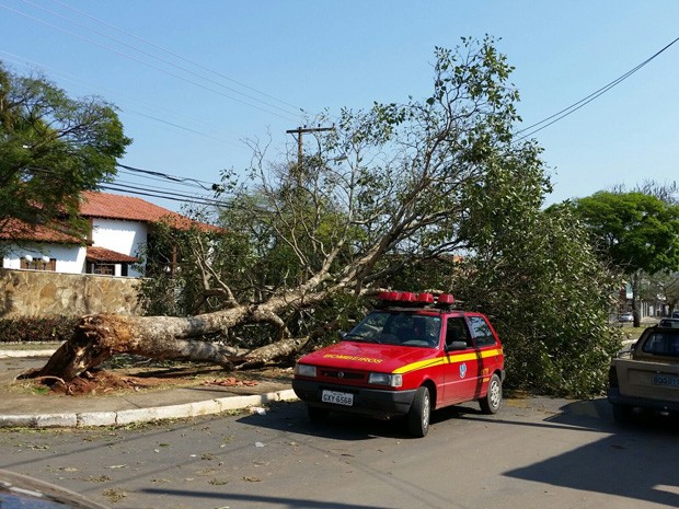 A chuva com granizo e ventos fortes caiu por volta de 15h30 e durou cerca de 20 minutos. Ainda conforme os bombeiros, os ventos na cidade chegaram a 50 quilômetros por hora.