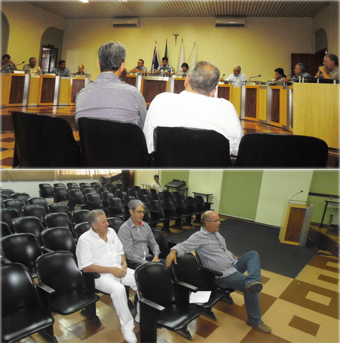 A reunião foi convocada às pressas e o projeto aprovado em única votação. Acima, Flamarion Landre e Aécio Assis, integrantes da dretoria da Santa Casa, e o secretário de Governo, Luiz Marcos Moraes (Fotos: Ascom/Câmara)