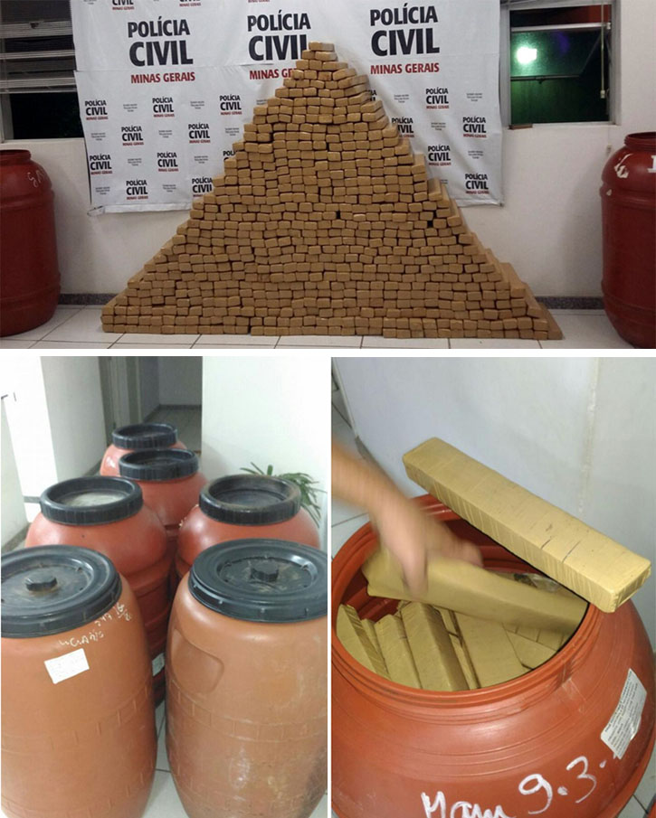 A droga estava escondida em um porão. Mais de 600 kg de maconha estava distribuído em 536 tabletes, divididos em seis tambores. O sítio fica na estrada do sítio Por do Sol, no bairro Rochas, localizado em Fama.