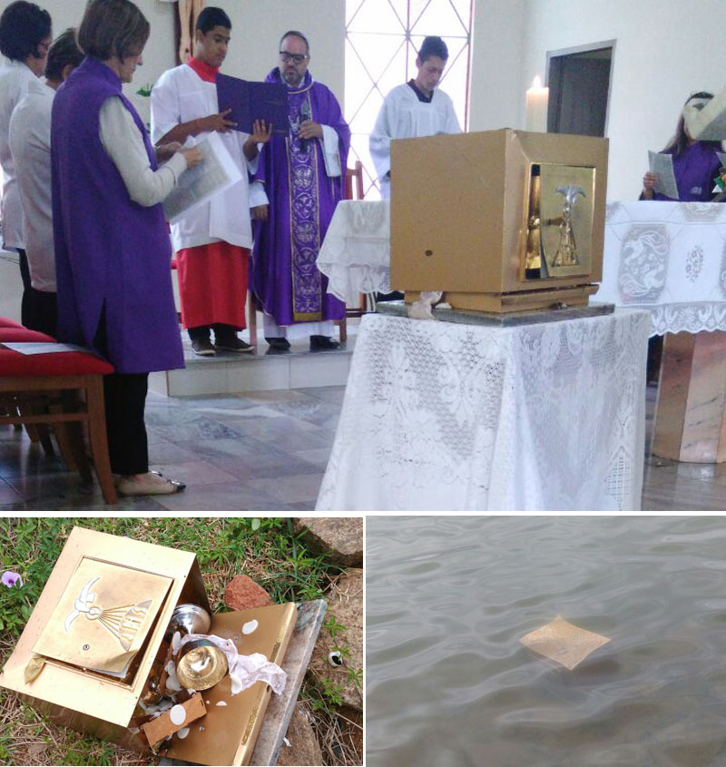 Ao chegar à igreja para iniciar os preparativos pela missa, o padre Benedito Passos não encontrou o sacrário (pequeno armário de metal em forma de cofre onde se guardam os objetos sagrados da igreja utilizados no rito da "comunhão") que fica na sala de sacristia.