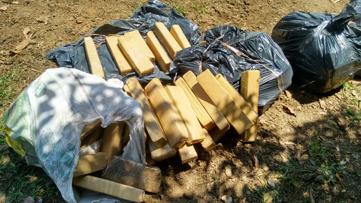 Na ocasião, o suspeito conseguiu fugir. Segundo os policiais, as características do terreno dificultaram o trabalho da polícia para prender o homem em flagrante delito. Foram apreendidos 164 tabletes de maconha prensada, totalizando 155 kg.