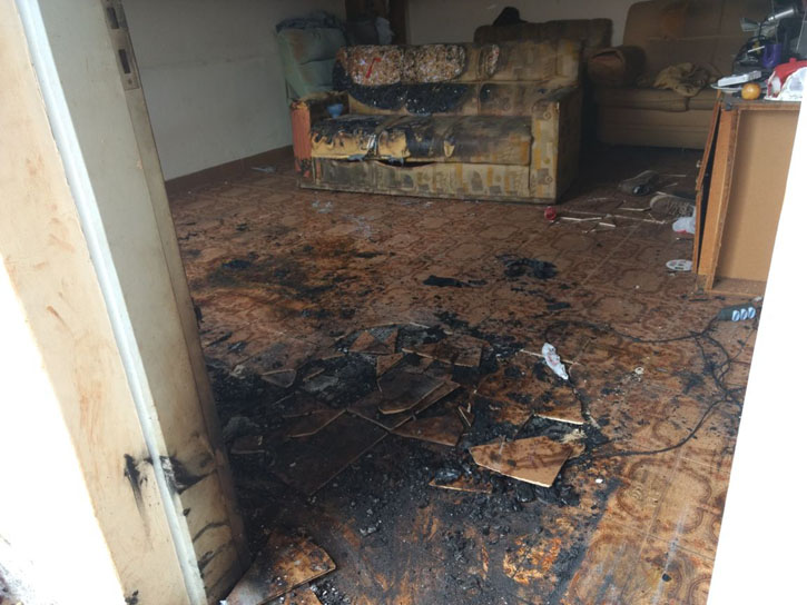 Os bombeiros depararam com o fogo na sala, onde estava consumindo um sofá feito em madeira e espuma. As causas do incêndio não foram esclarecidas, contudo não há indícios de que seja incêndio criminoso, informou o Corpo de Bombeiros.