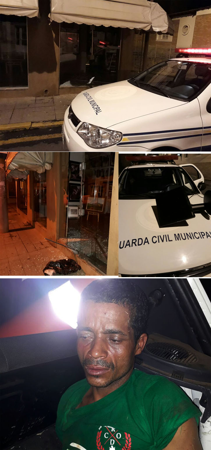 Um loja especializada em molduras e quadros, localizada na rua Coronel Pedro Corrêa, teve a porta de vidro quebrada e, em seguida, um monitor de computador foi furtado. Pouco tempo depois, a central de monitoramento da GCM visualizou, próximo a Sorveteria Zero Grau, um homem carregando um monitor.