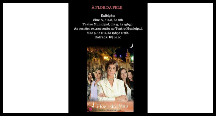 O filme “À Flor da Pele”, gravado em Alfenas com artistas da cidade, foi lançado nesta quinta-feira, 8 de março. A estreia na telona foi no Cine Art Café, na rua Presidente Artur Bernardes. A produção aborda a violência contra as mulheres e, por isso, foi escolhido o Dia Internacional da Mulher como data de estreia.