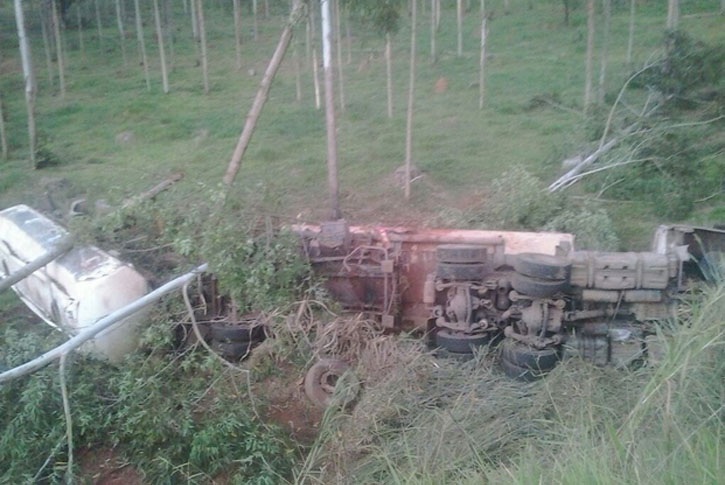 Uma carreta, transportando aproximadamente 30.000 mil litros de etanol, capotou e caiu em uma ribanceira. O acidente, na tarde de sábado, foi no km 203 da BR-491, em Paraguaçu.