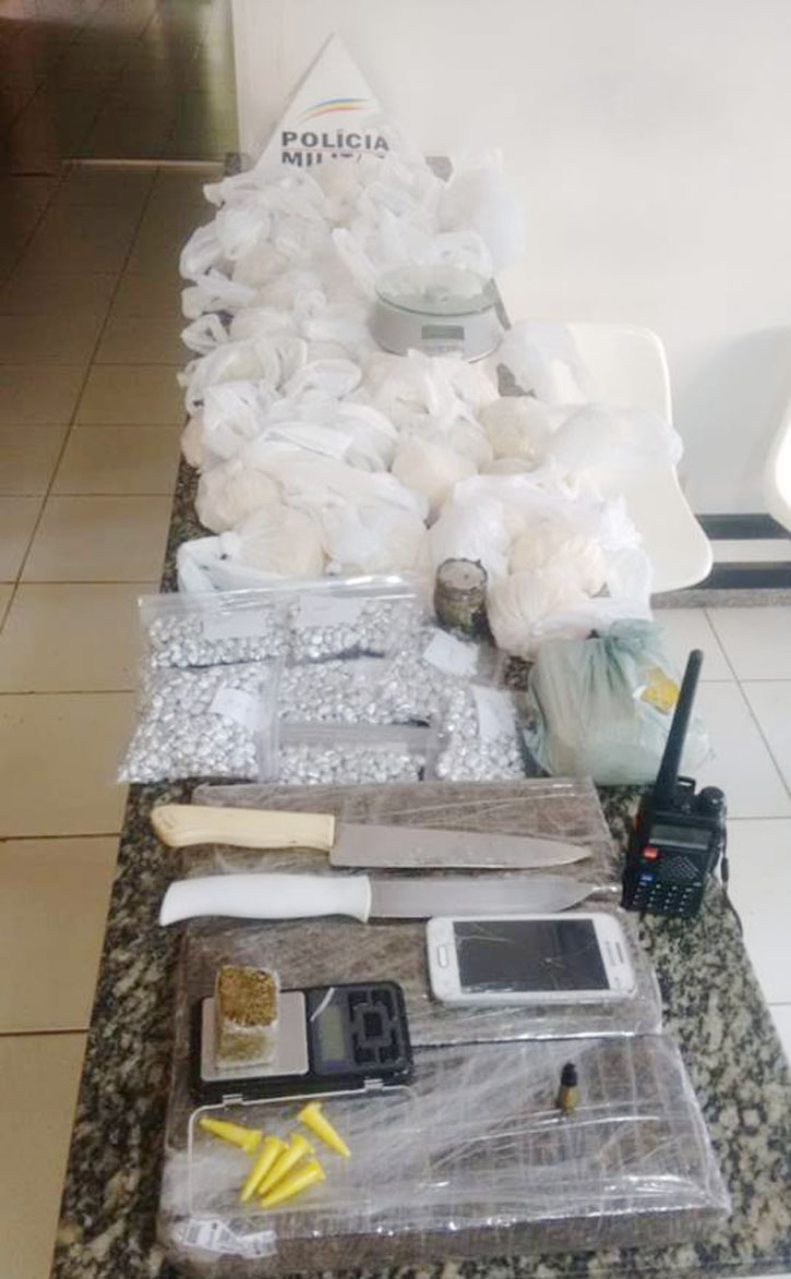 Além da grande quantidade de entorpecentes, a PM também apreendeu no local vários outros objetos como uma munição calibre 38, três balanças de precisão e duas facas com resquício de drogas. Um rádio HT UV-5R, que estava na frequência da Polícia Militar, também foi apreendido assim como um aparelho celular que será analisado nas investigações da Polícia Civil.