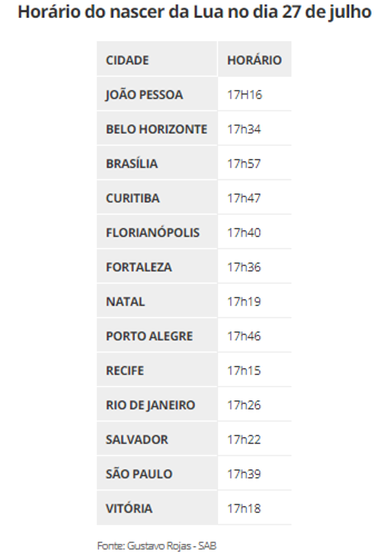 Na última sexta-feira (20), o G1 explicou que o eclipse lunar total vai ser o mais longo do século. O eclipse começa às 16h30, mas a Lua não terá nascido no Brasil ainda. A partir das 17h15 ela aparece no Recife, a capital brasileira com mais tempo para admirar a fase total, que termina às 18h13 minutos. A parcial, quando a Lua está só um pedaço coberta pela sombra, ocorre até 19h19 e poderá ser vista em todo o país.