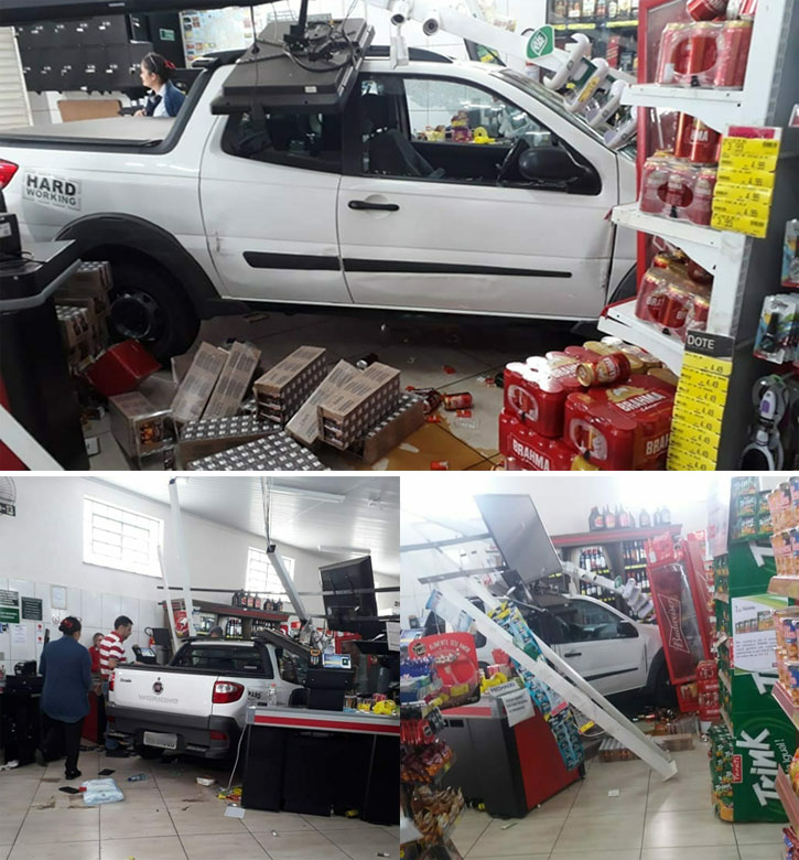 O veículo atravessou a rua e invadiu o supermercado, atingindo os caixas, danificando cinco computadores e parte da alvenaria da entrada do estabelecimento. A pick-up só parou ao atingir as mercadorias nas prateleiras. O carro também ficou danificado nas laterais e na parte frontal. Funcionários e clientes perceberam a aproximação do veículo e conseguiram evitar que fossem atingidos.