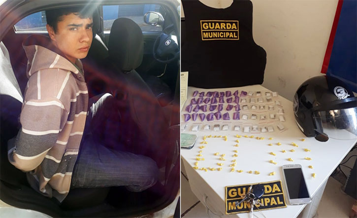 O rapaz foi preso sob a suspeita de levar drogas para que os adolescentes vendessem os entorpecentes naquela região. Os GMs apreenderam 30 buchas de maconha, 50 pedras de crack e 29 cápsulas com cocaína.