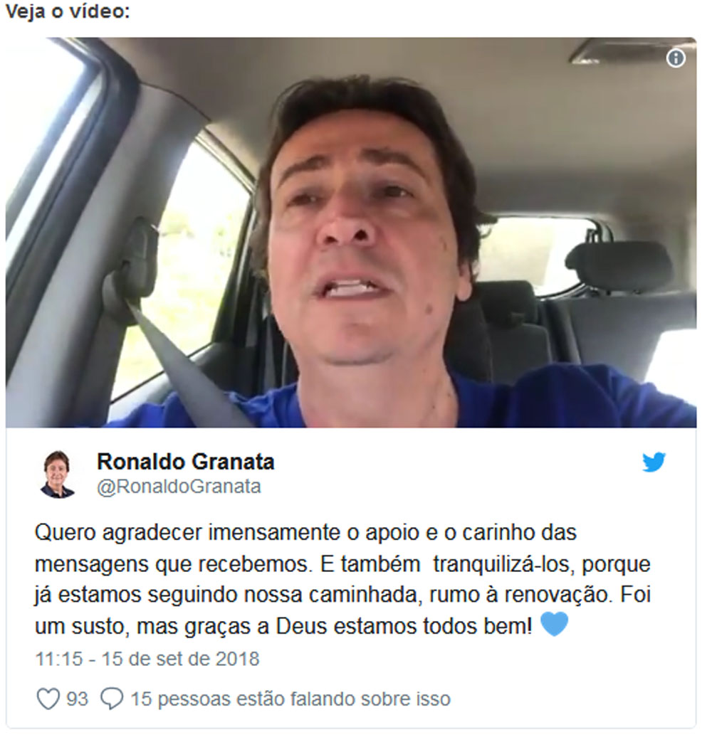 O cartola já recebeu alta médica e gravou um vídeo, publicado nas redes sociais, dizendo que já estava bem. “Quero agradecer imensamente o apoio e o carinho das mensagens que recebemos. E também tranquilizá-los, porque já estamos seguindo nossa caminhada, rumo à renovação. Foi um susto, mas graças a Deus estamos todos bem!”, declarou.
