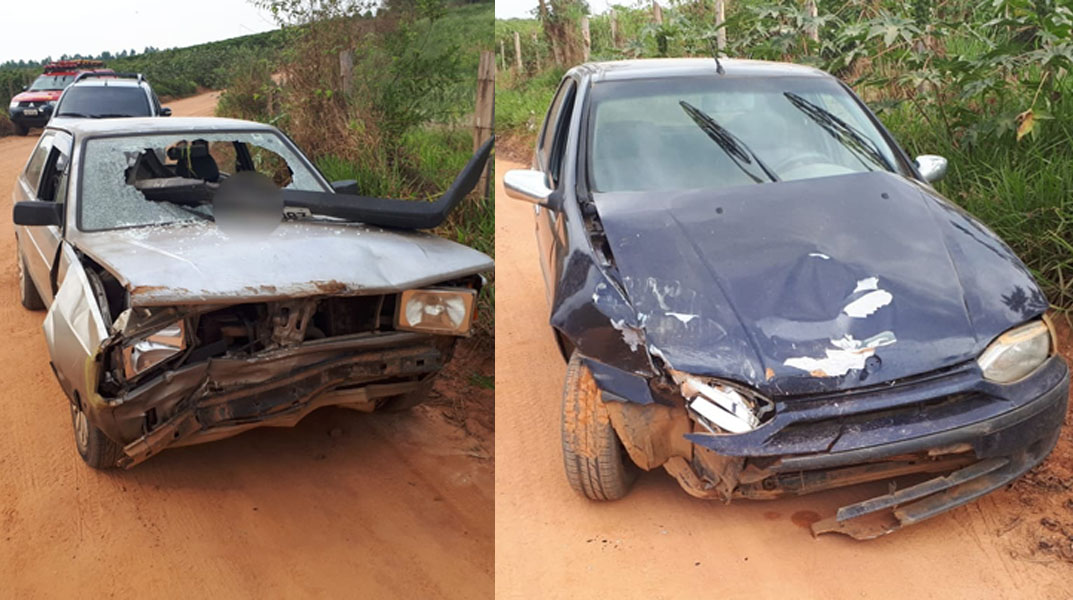 VW Voyage e um Fiat Pálio bateram de frente em uma estrada rural no Pontal das Esmeraldas.
