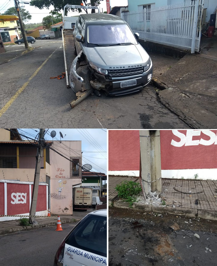 O motorista de um automóvel Range Rover bateu em um poste de iluminação pública na manhã deste domingo e fugiu em seguida. O veículo ficou danificado e foi apreendido, enquanto o motorista fugiu em um outro carro.