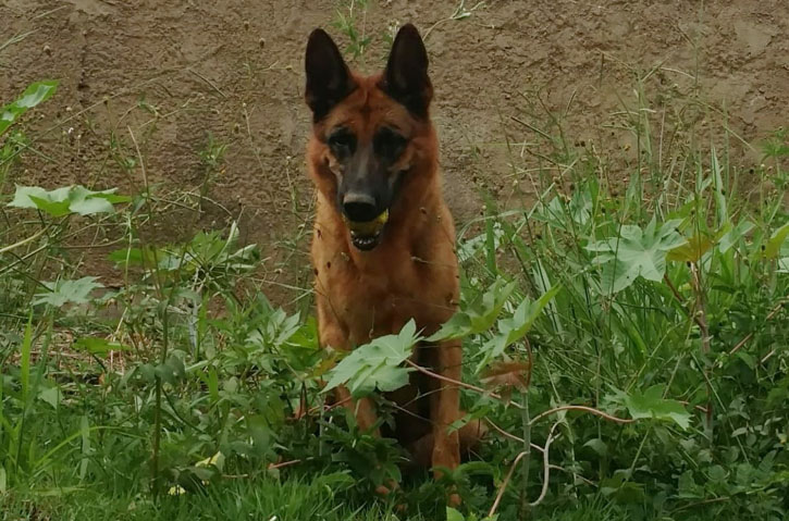 A cachorra, do Canil da GCM/Alfenas, localizou 123 cápsulas com cocaína que estavam enterrados.