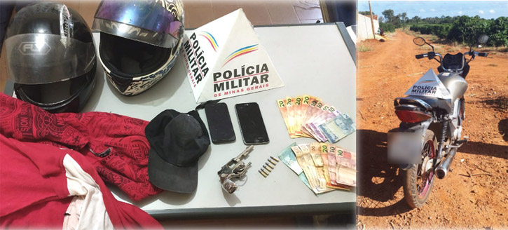 Um frentista de posto de combustíveis, localizado na Av. Getúlio Vargas, acenou para equipe policial logo após ter sido assaltado às 4h12min do último dia sábado (30) em Campos Gerais. No mesmo instante, informados sobre as características dos suspeitos, houve iniciado rastreamento para localizá-los. A Polícia Militar chegou a visualizar uma moto em alta velocidade.