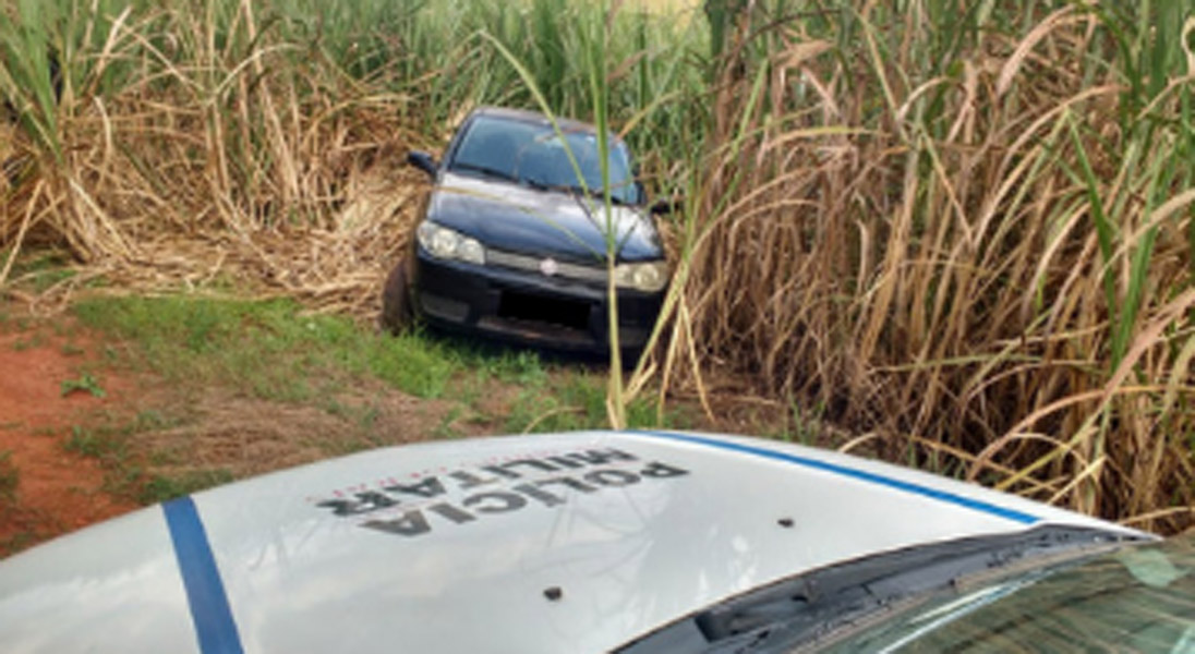 Os policiais chegaram até o carro após uma ligação anônima informando sobre o veículo. O carro foi encontrado em meio a um canavial do bairro Cascalho. O automóvel foi furtado em 31 de março, no bairro Vila Teixeira. Abaixo, foto divulgada pela PM.