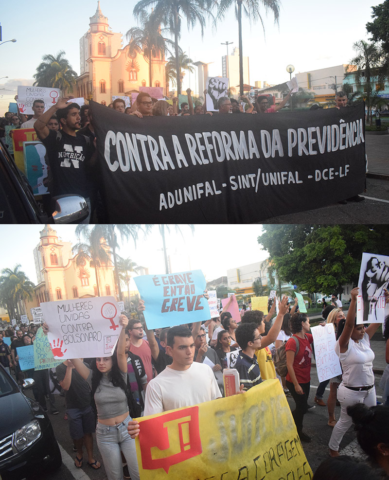 Manifestantes foram as ruas de Alfenas protestarem contra a reforma da Previdência, proposta do governo em tramitação no Congresso Nacional. Os protestos e paralisações fazem parte de um movimento nacional, que ocorreu em todo país na sexta-feira (14).