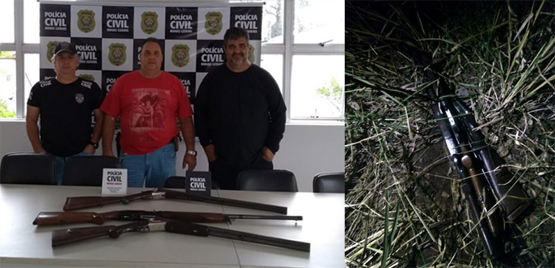 As escopetas foram encontradas pelos investigadores da Polícia Civil em um matagal, na zona rural de Alfenas. O terreno fica entre o Residencial Teixeira e a estrada de acesso ao bairro rural São Tomé. Os investigadores Ivanil Ferreira (Chororó), José Augusto e Geraldo Magela encontraram as armas enquanto seguiam as pistas de suspeitos de assalto.