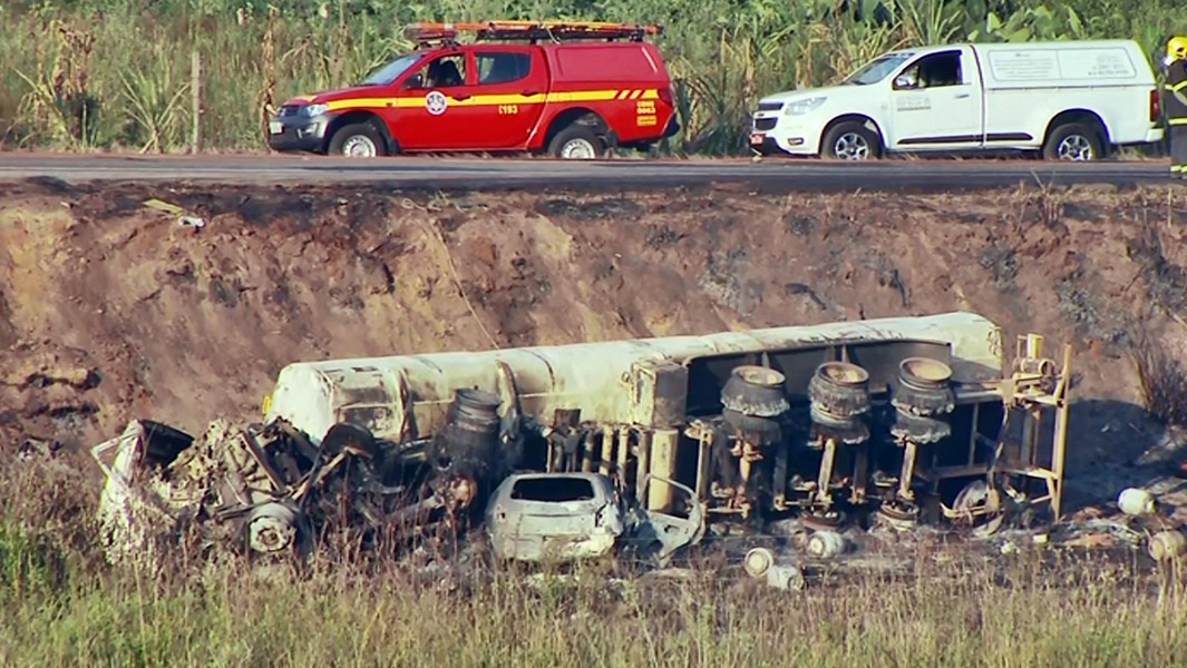 Na quinta-feira, os bombeiros já haviam conseguido retirar o corpo do carona no caminhão de combustível, Alexsandro Viana Souza. Mas os trabalhos foram interrompidos na sequência devido ao risco de explosões.