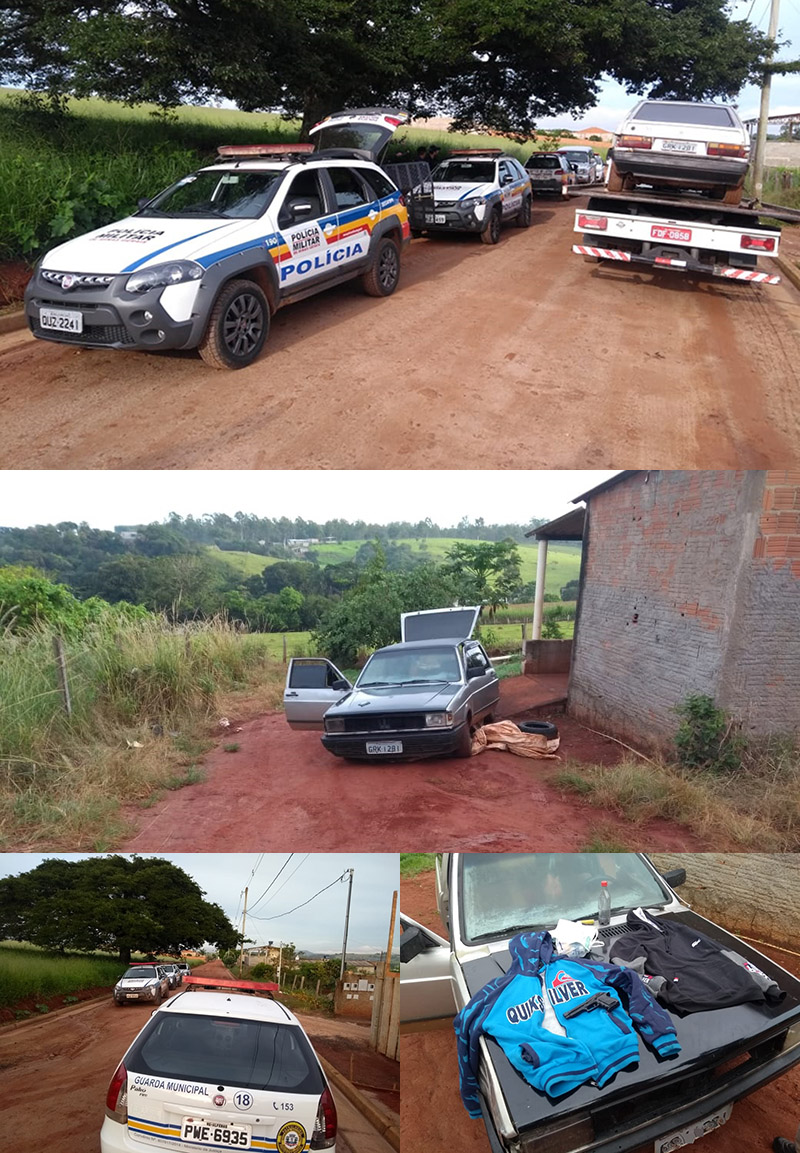 Na sequência, uma viatura da GCM localizou um VW Gol, veículo que teria sido usado no assalto, em frente casa de um dos suspeitos, no Gaspar Lopes. No local foram encontrados um simulacro de arma de fogo, roupas usadas no crime, além de R$ 300,00. Os suspeitos, de 21 e 22 anos, foram presos e levado para Delegacia da Polícia Civil (Depol).