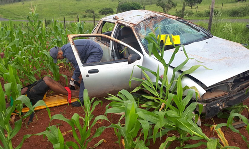 Segundo o motorista, de 38 anos, ele seguia sentido Areado quando outro automóvel apareceu em sua frente. Ao desviar para evitar uma colisão, seu carro saiu da pista, capotou e foi parar dentro de um milharal.