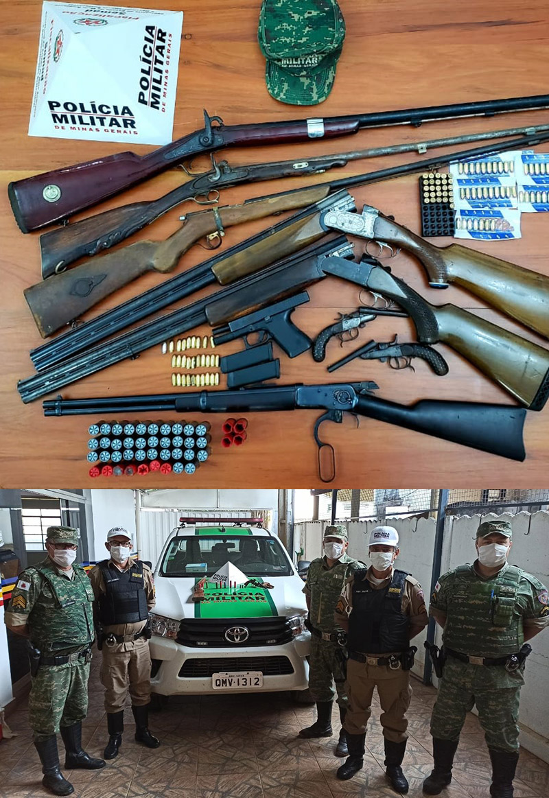 As armas apreendidas são de diversos calibres (espingardas, revolveres e pistolas). Também foram apreendidas cinco armas brancas, duas redes, quatro pássaros da fauna silvestre brasileira. Seis autos de infrações foram aplicados aos autores que mantinham pássaros em cativeiro, redes e tarrafas de forma irregular, totalizando R$ 34.10,67.