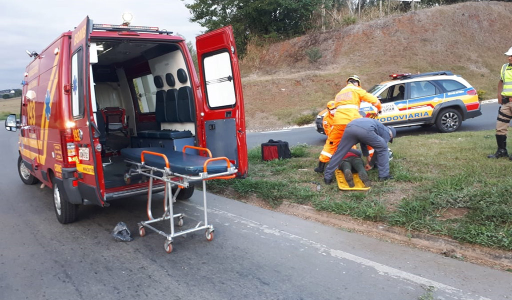 Um motociclista de aproximadamente 30 anos foi socorrido pelo Corpo de Bombeiros no final da tarde de quarta-feira. Ele perdeu o controle da motocicleta ao entrar na rotatória que dá acesso ao distrito industrial de Alfenas às margens da rodovia MGC 491, próximo ao KM 174.