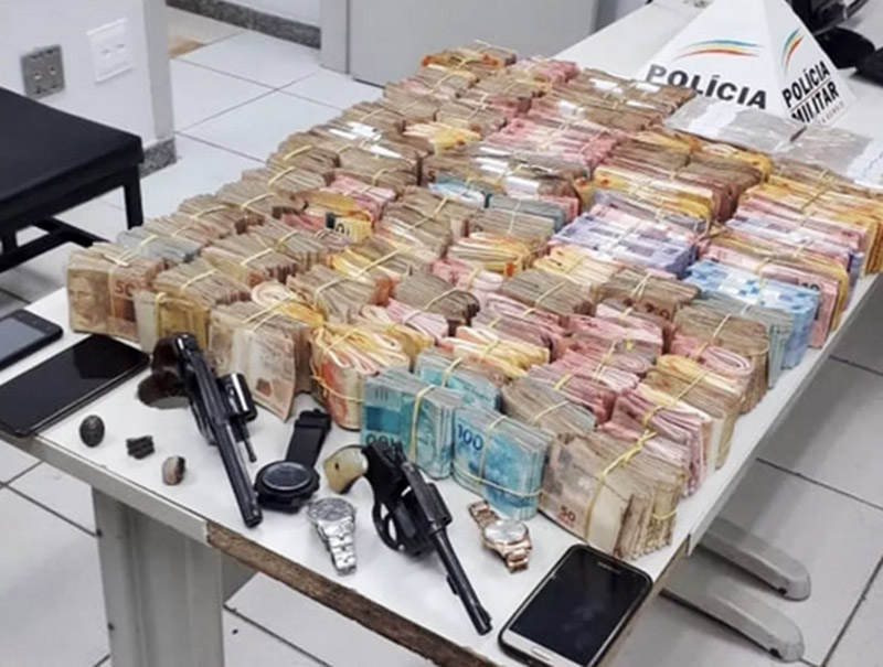 Parte do dinheiro roubado na agência bancária foi recuperado em Alfenas no mês passado (Foto: Arquivo/PM)