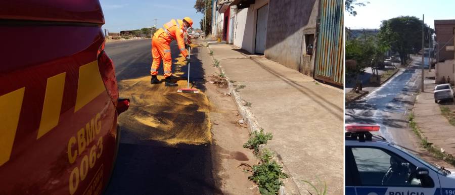 Um caminhão, que transportava óleo, derramou grande quantidade do produto em várias ruas, gerando risco de acidente. O Corpo de Bombeiros foi acionado para evitar a possibilidade de um acidente. O caso foi na manhã desta quarta-feira.