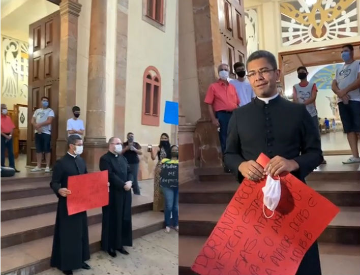 O protesto foi em apoio ao padre Rivas que foi vítima recentemente de atos de racismo.