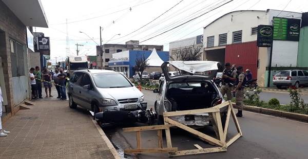 Com o impacto, o Celta bateu em um Chevrolet Zafira e uma moto, que estavam estacionados. Poucos metros depois, o Corolla bateu em um Volkswagem Fox e, com isso, o motorista em fuga perdeu o controle e atingiu o alambrado do estacionamento do Supermecado Epa.