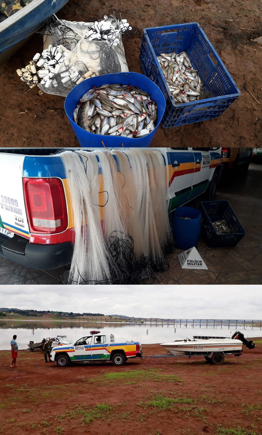 No barco do casal haviam 20 kg de lambari, além de oito redes para pesca sem plaquetas de identificação. O barco de alumínio e o motor (marca Jhonson 15 HP) também foram apreendidos. O pescado apreendido foi examinado por um veterinário, que atestou estar apto ao consumo e, com isso, foi doado para uma instituição de Alfenas.