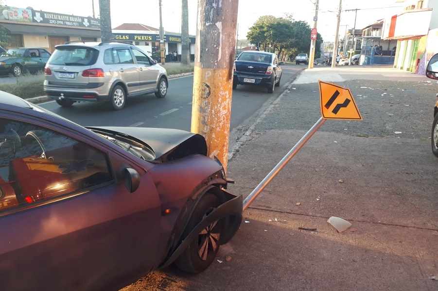 Motorista bate o carro em poste de iluminação