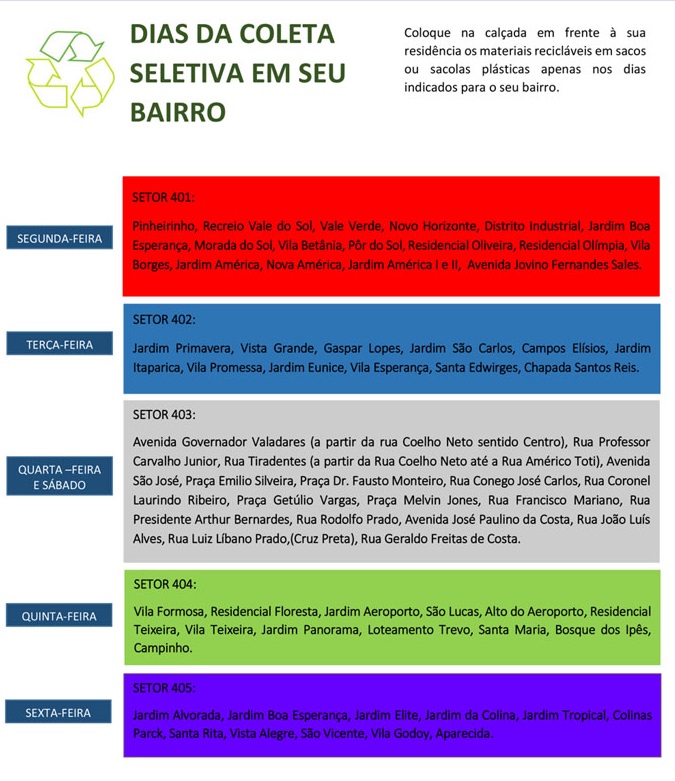 Abaixo o cronograma que era seguido pela Alfenas Ambiental e que foi assumido pela empresa Alisson Sucata: