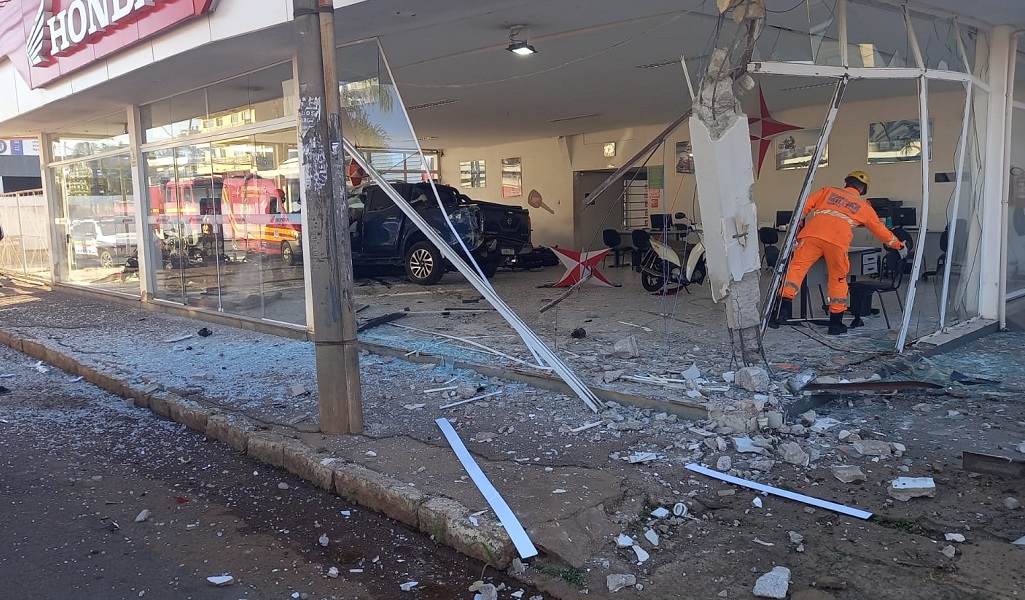 Carro invade concessionária após motorista perder o controle da direção