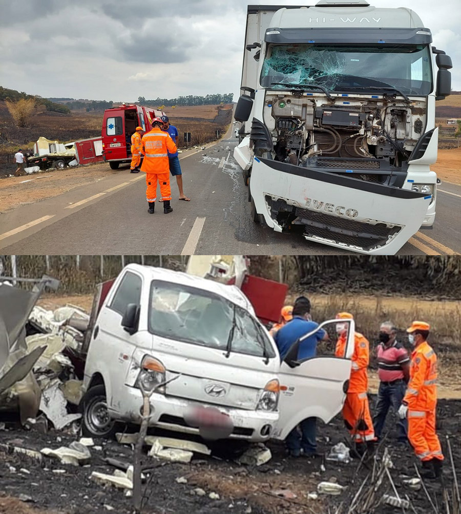 A informação divulgada, no final de semana pelos bombeiros, era de que o motorista do caminhão Hyundai passou mal, reduziu a velocidade na rodovia e a carreta bitrem, que estava atrás, bateu na traseira do caminhão, jogando-o para fora da pista.