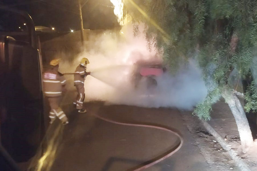 Carro pega fogo durante a madrugada de domingo