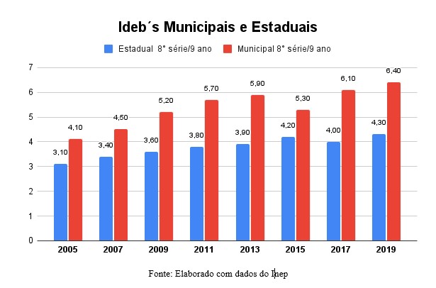 Tal tendência vai muito na direção das tentativas e projetos de municipalização do ensino fundamental. Mesmo que mais direcionado, nesse momento, aos anos iniciais, tem sido debatida a questão e é importante saber também como está o rendimento das escolas dos anos finais.