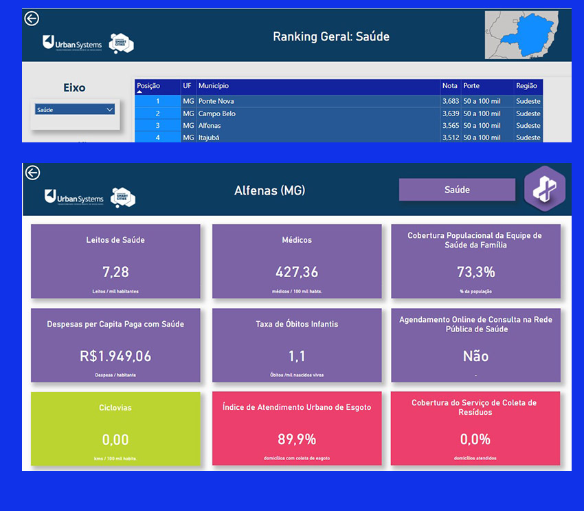 Alfenas alcançou a 12ª colocação no ranking estadual no item saúde e foi a 58ª colocada no levantamento nacional. Entre as cidade, com 50 mil a 100 mil habitantes, Alfenas aparece na 3ª colocação. Os dados são do Ranking Connected Smart Cities 2021, desenvolvido pela Urban Systems em parceria com a Necta.