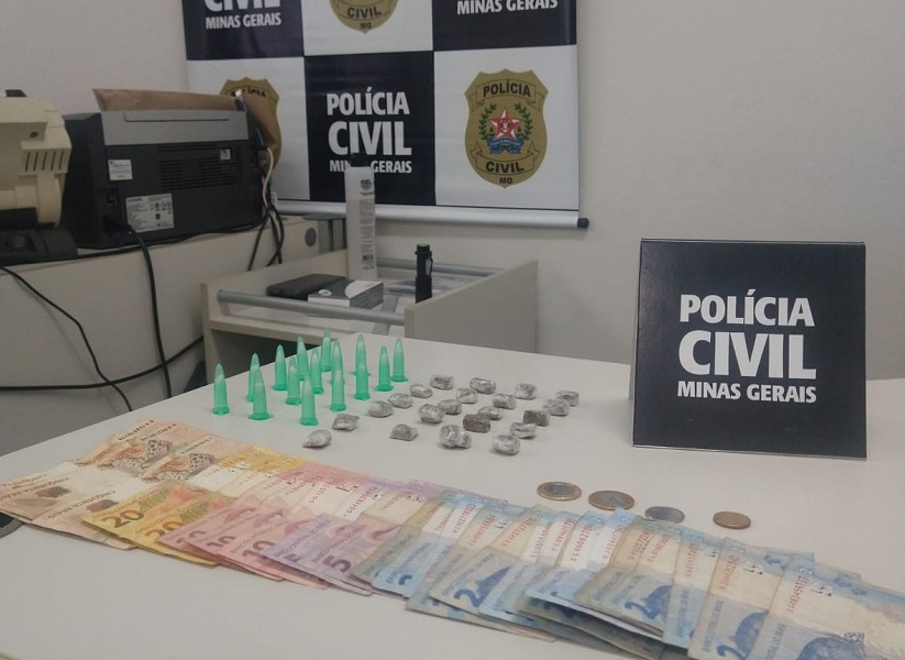 Foram apreendidas 15 cápsulas com cocaína, 22 buchas de maconha, além de uma quantia em dinheiro.