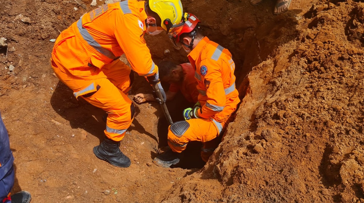 Segundo o Corpo de Bombeiros, a vítima ficou coberta até a região do pescoço. Moradores e a equipe do Samu (Serviço de Atendimento Móvel de Urgência) ajudaram nos trabalhos iniciais de retirada da terra, até a chegada dos bombeiros.