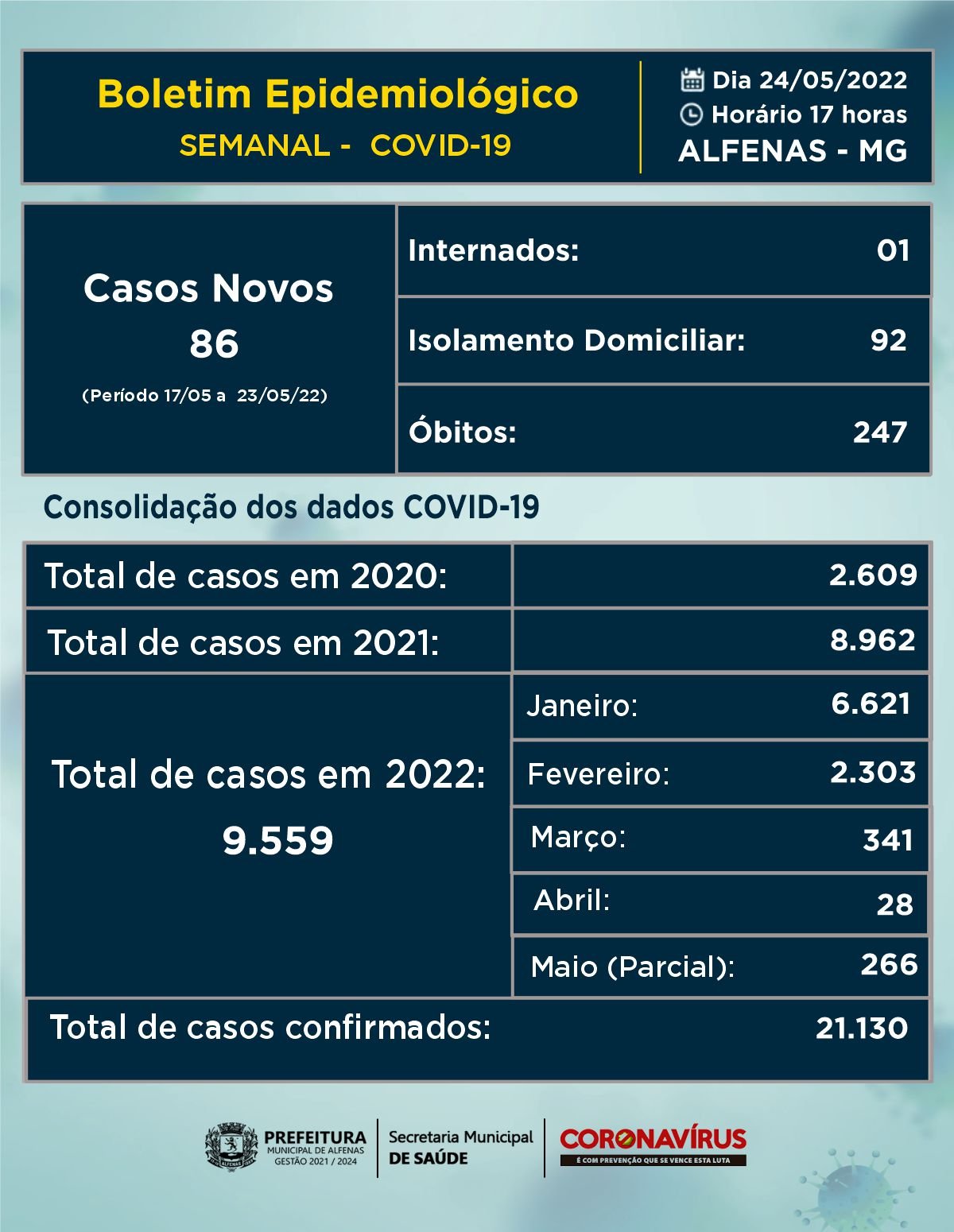 Os casos de covid-19 em Alfenas saltaram de 28, em abril, para 266 em maio, segundo dados parciais até o último dia 24. Os números estão no boletim epidemiológico da Secretaria de Saúde de Alfenas, divulgado no decorrer da semana.