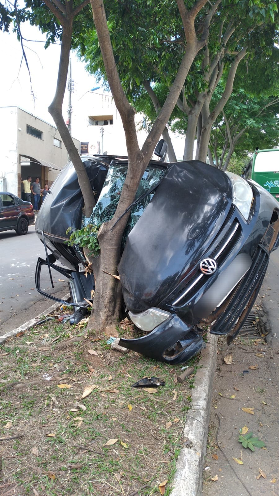 Carro bate em árvore de canteiro central