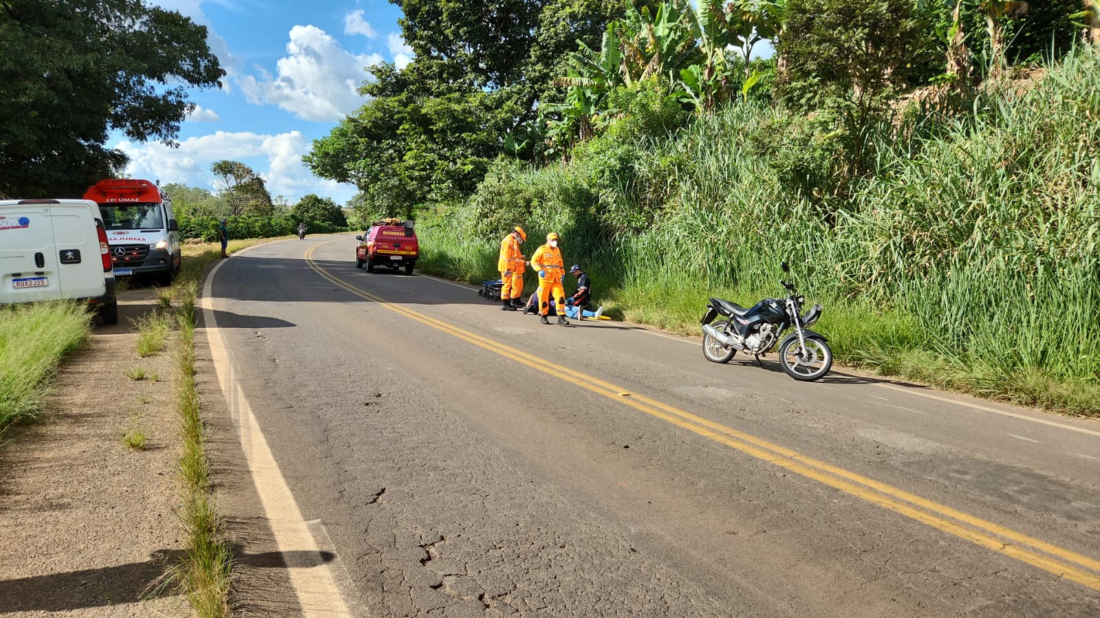 Segundo o Corpo de Bombeiros, a vítima teve uma possível fratura no braço esquerdo. A passageira, assim como o motociclista, sofreu escoriações pelo corpo.