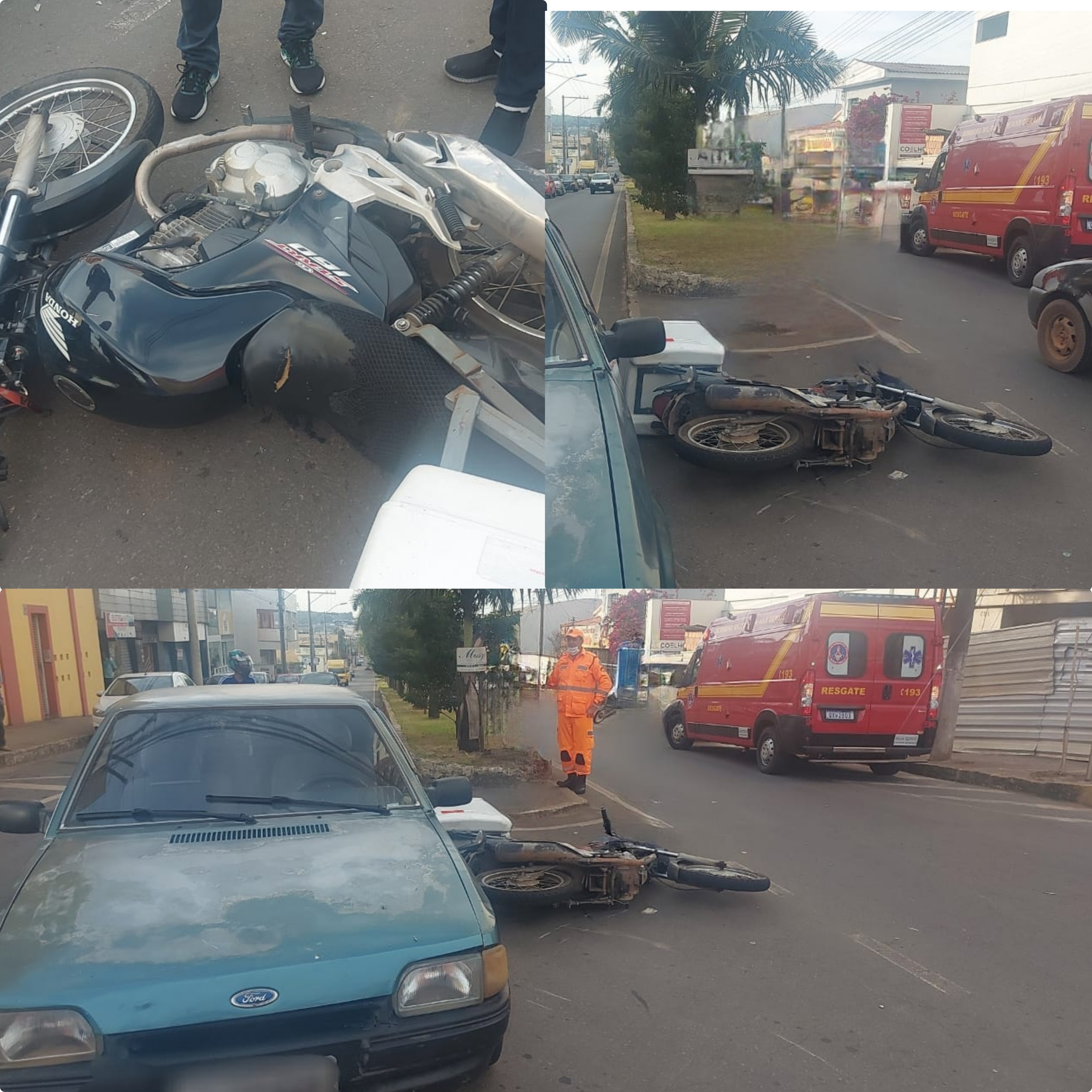 Um motociclista ficou ferido, na tarde de terça-feira, em um acidente envolvendo uma motocicleta e dois carros. O acidente foi em um cruzamento da avenida Governador Valadares e a rua Pio XII.