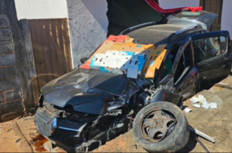O impacto do veículo no poste resultou no rompimento da fiação de baixa e média tensão elétrica, criando uma situação de risco. Além disso, o veículo havia colidido com uma residência próxima, danificando parte de sua estrutura.