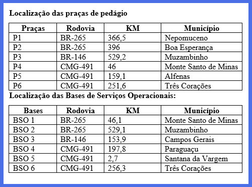 O valor da tarifa praticado em todas as praças do Lote 3 – Varginha-Furnas, do Programa de Concessão do Governo do Estado de Minas Gerais, será de R$ 14,30 para veículos de passeio e R$ 7,15 para motocicletas, conforme previsto no contrato de concessão. A cobrança terá início a partir de 0h do dia 26 de julho.