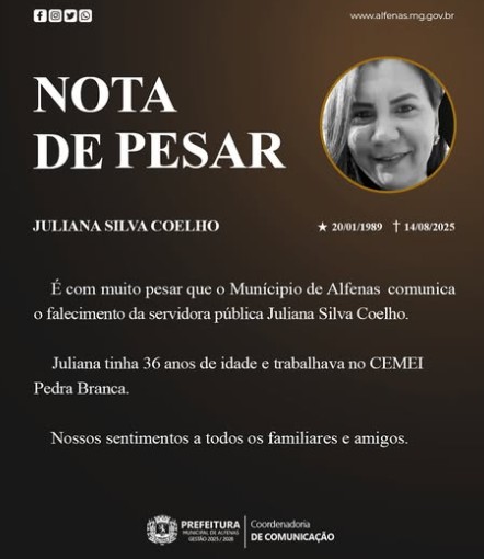 A Prefeitura de Alfenas publicou uma nota de pesar: