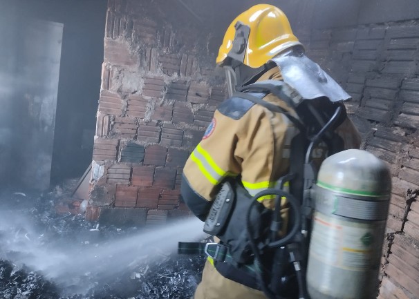O incêndio causou danos materiais significativos: roupas e colchões foram completamente queimados e parte da estrutura do telhado da residência foi danificada.