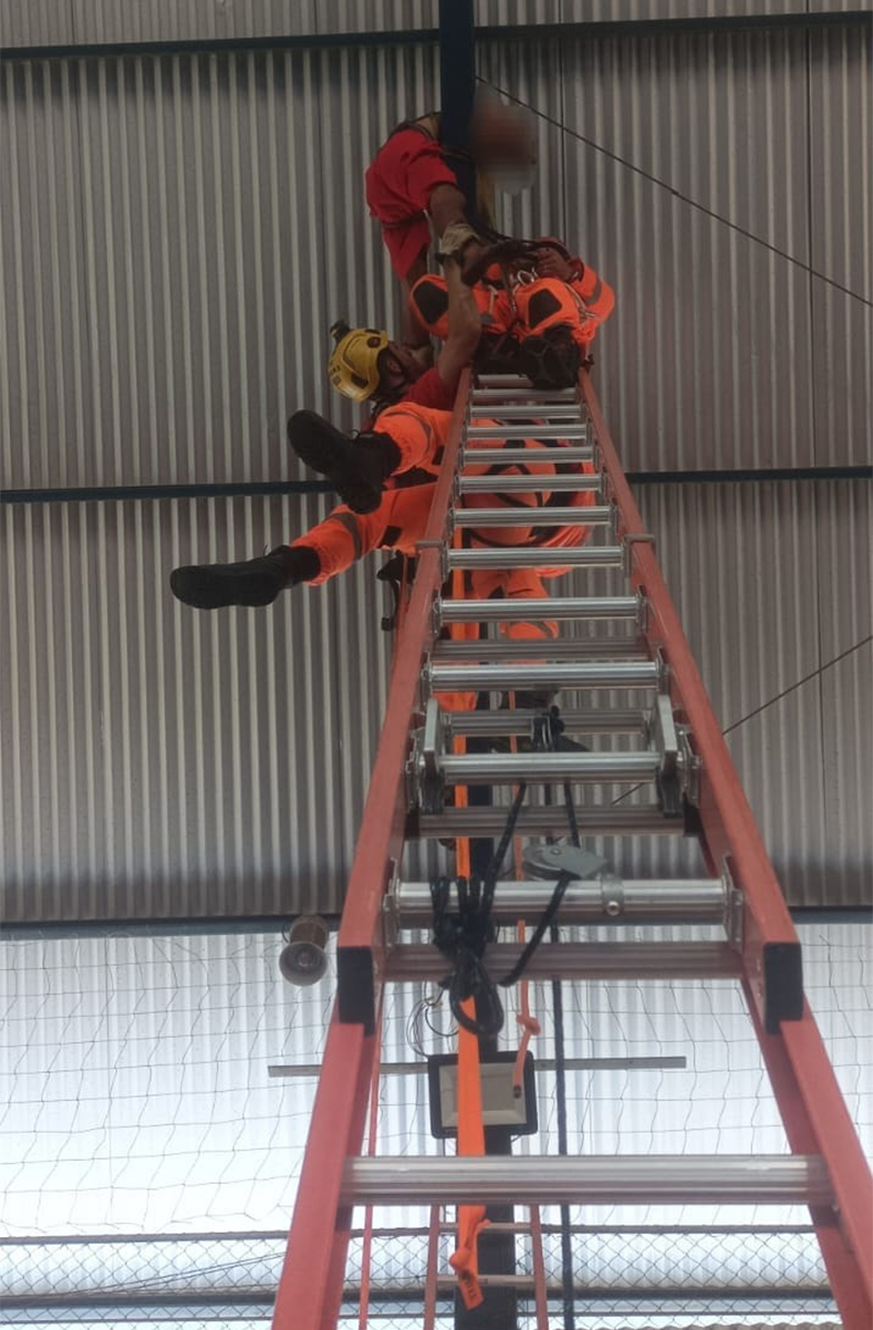 Homem é resgatado de uma altura de aproximadamente 15 metros